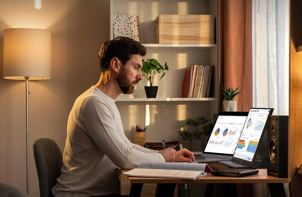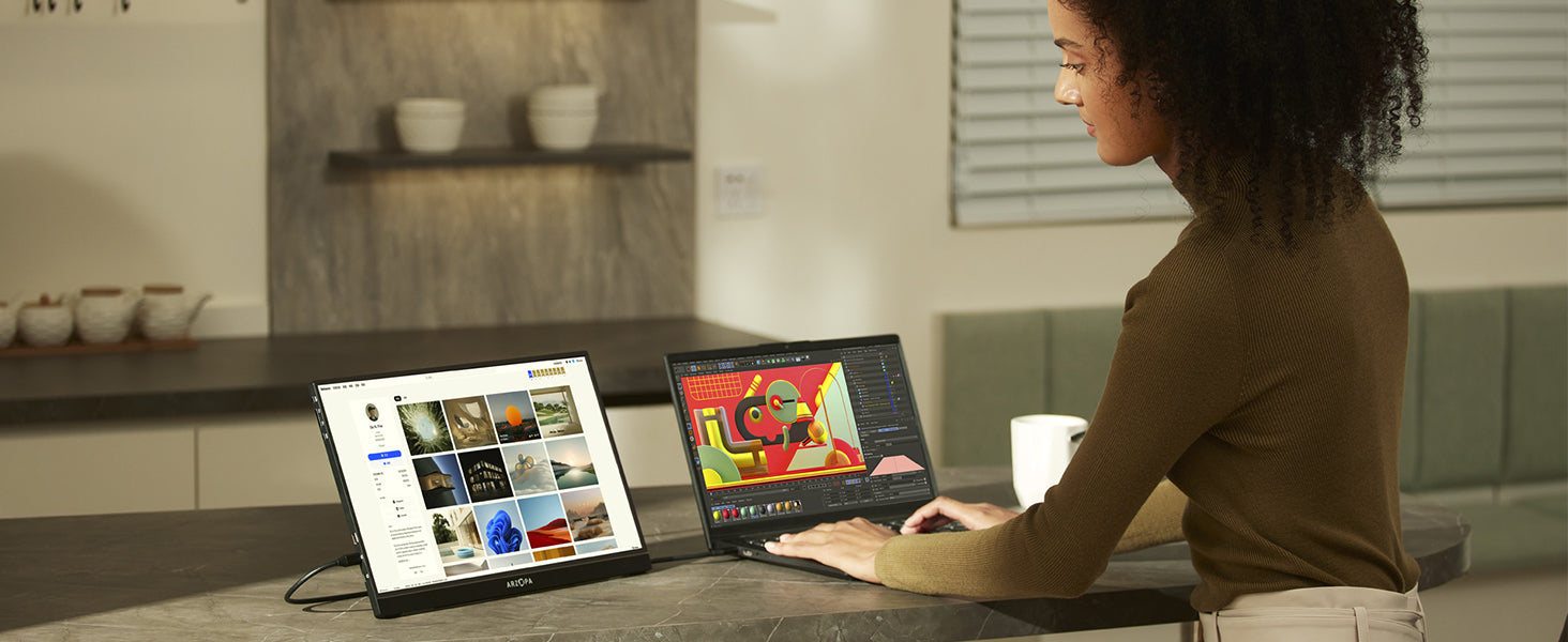 Ready for collaboration, anywhere. Seamlessly work together with portable monitor designed for easy sharing and presenting.