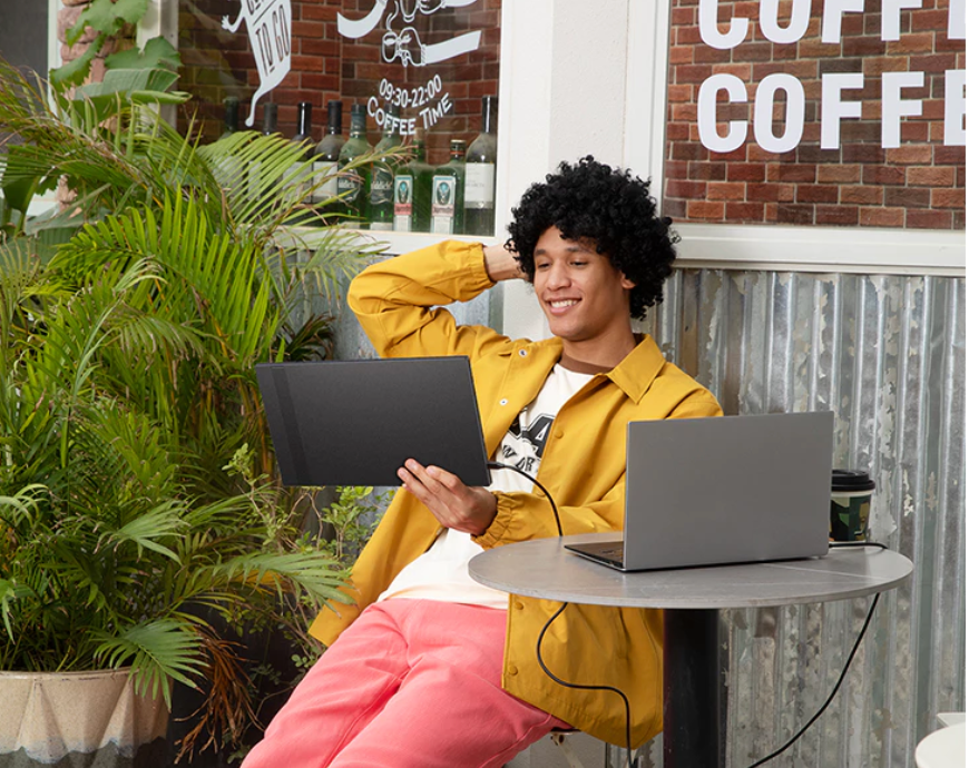 Ready for collaboration, anywhere. Seamlessly work together with portable monitor designed for easy sharing and presenting.